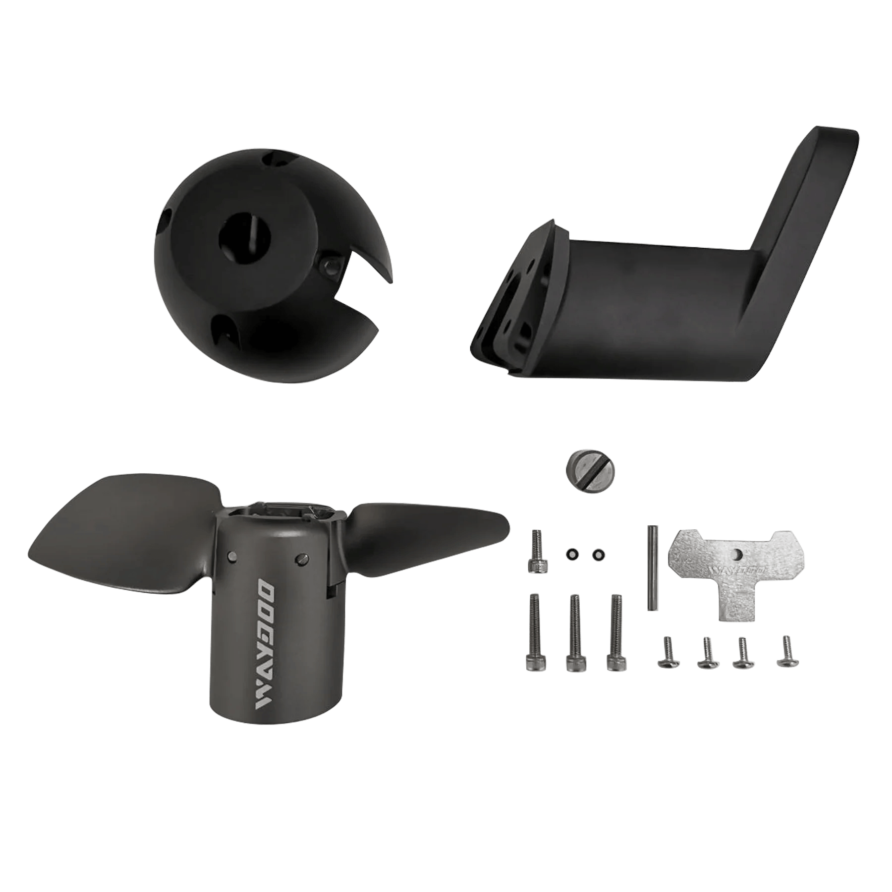The folding propeller is easily interchangeable with a standard propeller, offering versatility to match different water conditions and desired riding experiences. The WAYDOO 140-GLIDE FOLDING PROPELLER KIT includes all the necessary hardware for installation onto the eFoil motor. It’s important to note that using this propeller without a protective guard is strongly discouraged and considered dangerous, recommended for advanced riders only due to the exposed, free-spinning blades. The kit also includes a tail cone to replace the standard propeller shroud.